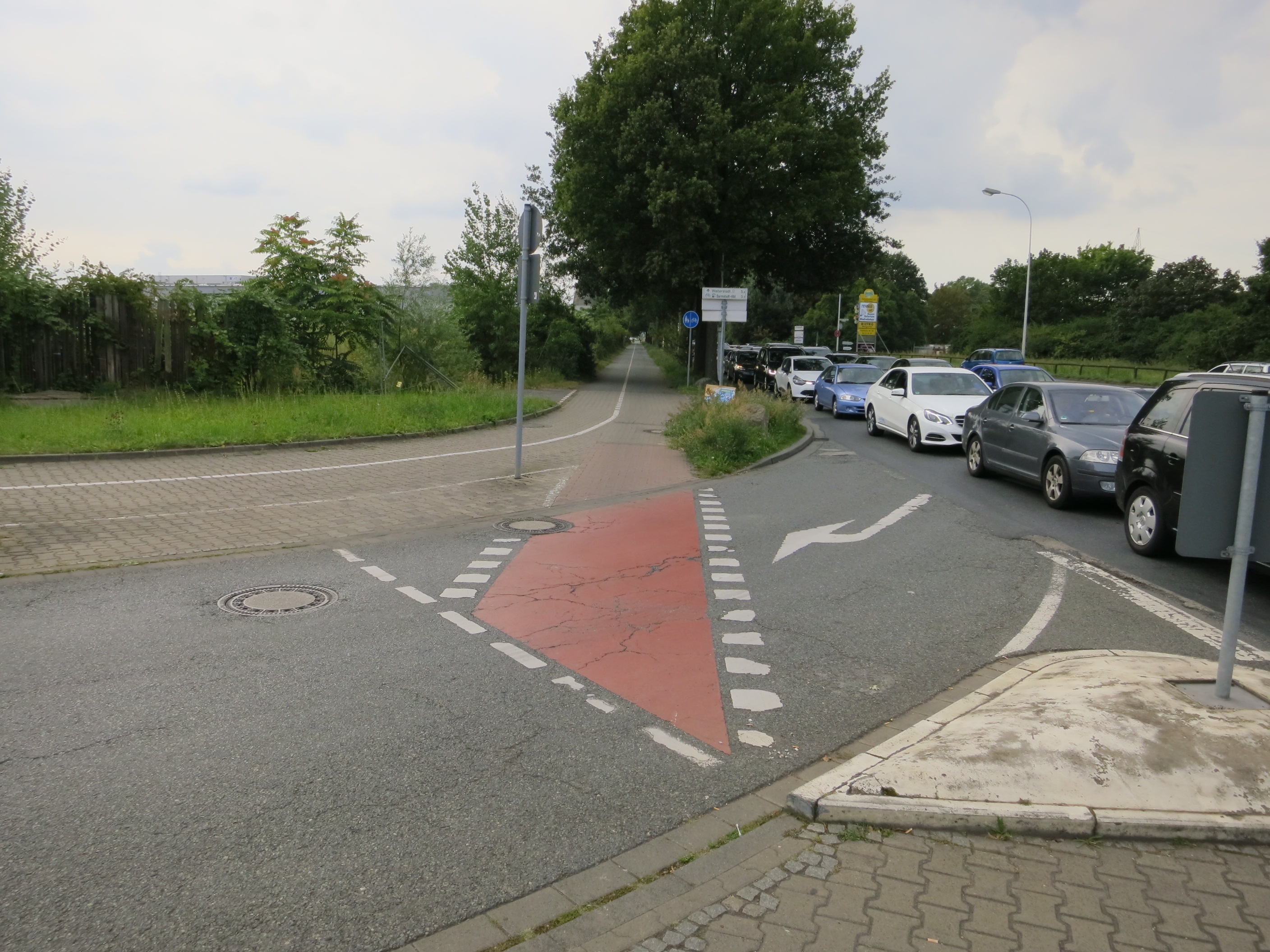 2016-08-19_15-45-41_10 25. August 2016 2816 × 2112 Frankfurter Str – Verschlechterung für Radfahrer an Kreuzung M-L-K-Ring geplant Fahrtrichtung Westen (Zweirichtungsradweg).