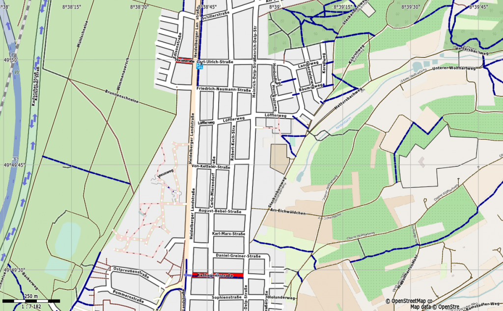 - Katharinenstraße (zwischen Heinrich-Delp-Straße und Heidelberger Landstraße)